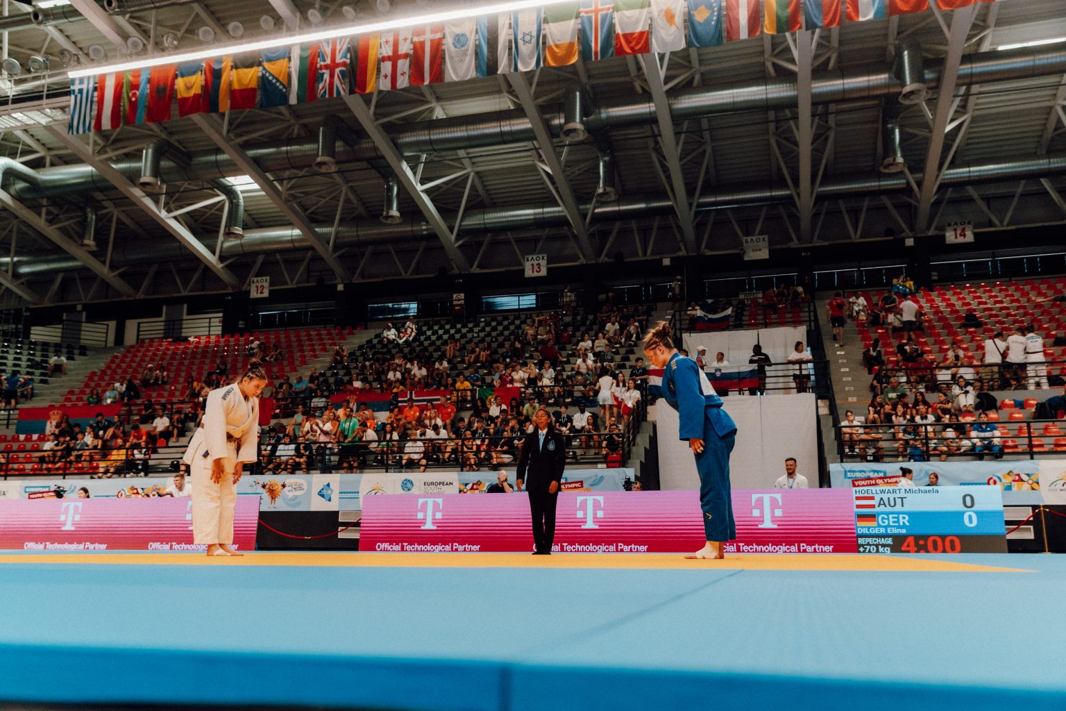 Michaela Höllwart (+70/ESV Sanjindo Bischofshofen/S) bezwang Zemfira Aliyeva (AZE) mit zwei Waza-ari-Wertungen, scheiterte dann aber an Kristyna Kaszperova (CZE/2) und Elina Dilger (GER/7), beide schafften es in den Finalblock, stehen jeweils im Finale um Bronze.