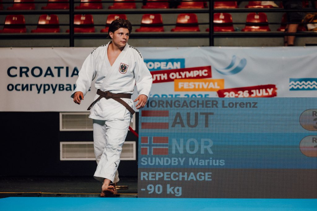 Lorenz Horngacher (-90/WSG Swarovski Wattens/T) schlug Jozef Svatek (SVK) mit Ippon und musste danach Ippon-Niederlagen gegen Nemanja Simic (SRB/3) und Marius Sundby (NOR/6) einstecken.