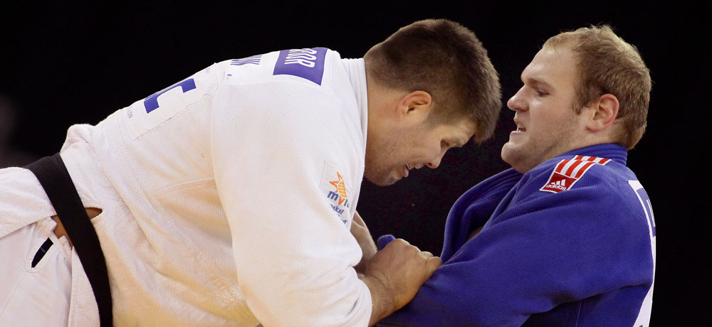 Allerstorfer stolpert gegen den dreifachen Vize-Europameister Barna Bor (HUN), den er aus diversen Duellen bereits gut kennt, über eine Beintechnik, für die es eine Waza-ari-Wertung gibt, und wird anschließend festgehalten.