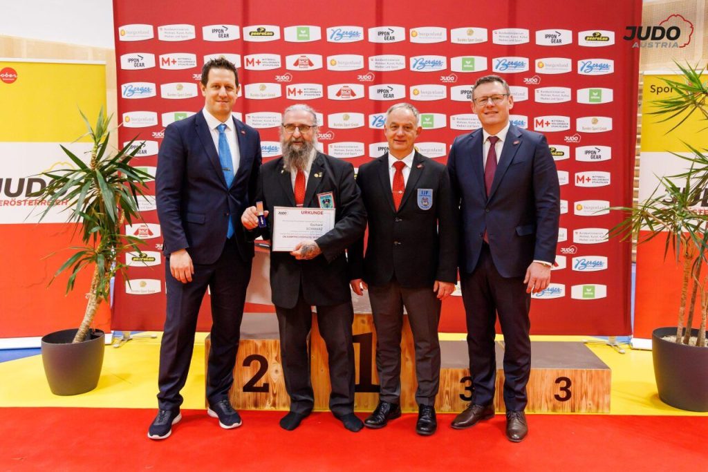 Ein weiteren feierlichen Moment stellte die Verleihung des Silbernen Ehrenzeichens des Österreichischen Judoverbands dar: Alfred Scharnreiter, Monika Kronberger und Markus Bruckschlögl wurden für ihre besonderen Verdienste um den österreichischen Judosport ausgezeichnet.
